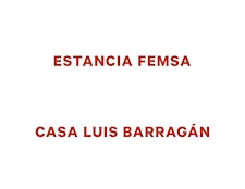 Estancia Femsa es una plataforma cultural y artística auspiciada por Casa Luis Barragán con el apoyo de Colección FEMSA. Con la dirección artística de Eugenia Braniff y Patrick Charpenel, la iniciativa propone una serie de exposiciones, intervenciones, performance, actividades académicas, educativas y publicaciones que dialogan con el contexto histórico que ofrece la Casa, así como el legado de Luis Barragán, uno de los arquitectos más destacados del siglo XX.